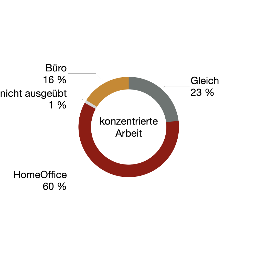 Rückzugsmöglichkeiten für konzentriertes Arbeiten sollten daher bei der Ausgestaltung künftiger Raumkonzepte deutlich stärker berücksichtigt werden.